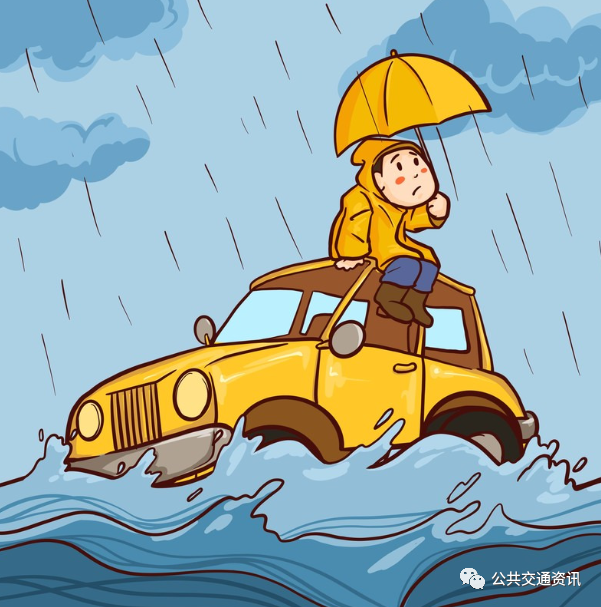 城市發(fā)生洪澇災(zāi)害時,道路積水嚴重,公路可能被沖毀。若不注意觀察水深,涉水通過積水路段會導致公交車熄火、被淹,洪水甚至會沖走公交車。