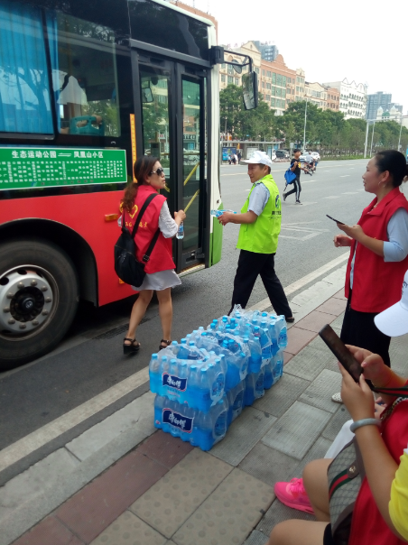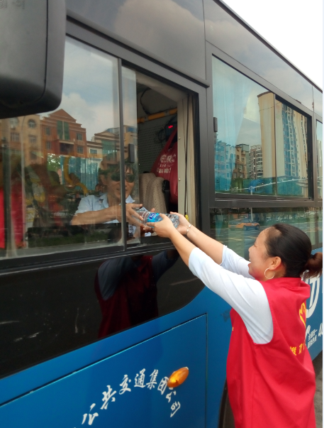掇刀區(qū)義工聯協(xié)同公交志愿者為公交司機送清涼活動