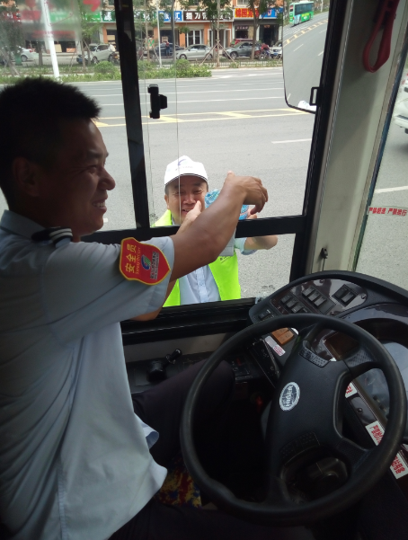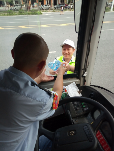 “目前還有小部分線路的公交車是沒有空調的,就算夏天再熱也得堅持,現在天這么熱,一天下來衣服都不知道要濕多少次。今天有他們給我們送來的礦泉水,讓我們司機在這夏日里體會到了一絲清涼,真的很感謝他們。有了他們的支持和理解,我們更要做好本職工作?!惫患瘓F工作人員說。