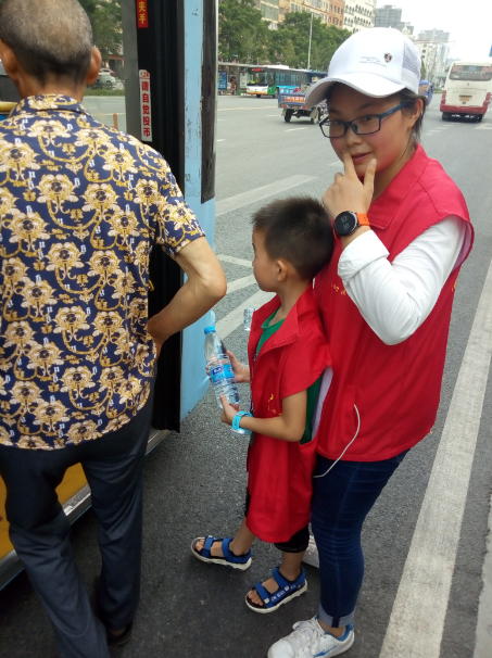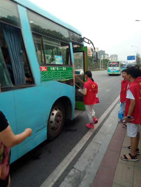 15時許,志愿者們已經布置好了送水點,將箱礦泉水擺在了站臺旁邊。每有一輛公交車進站???,志愿者們都會給駕駛員們遞上兩瓶礦泉水,還有一些放暑假的小朋友們,也熱情的加入到此次活動,充當著志愿主力軍,用他們的行動清涼了公交駕駛員的心,傳播著社會正能量。