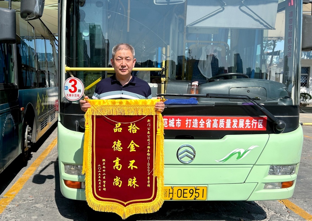 9月4日,市民賀先生拿著一副寫有“拾金不昧 品德高尚”的錦旗交給市公交集團(tuán)二公司相關(guān)負(fù)責(zé)人手上,希望轉(zhuǎn)交給3路李學(xué)鋒師傅,言語間滿是感激。