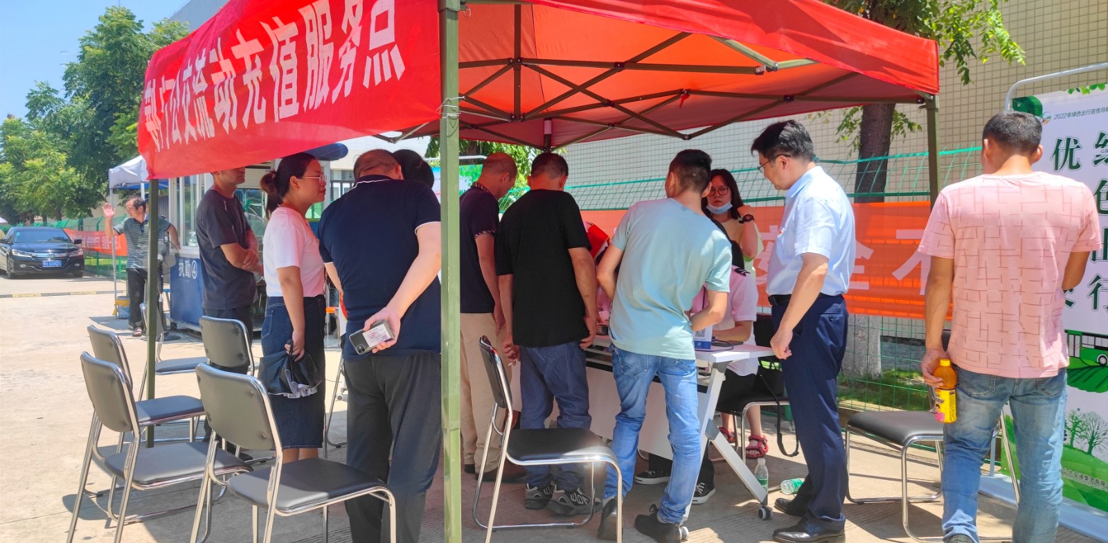 當(dāng)天中午12時(shí),正是一天最炎熱的時(shí)候,也是廠區(qū)職工午休時(shí)間。選在這個(gè)時(shí)間段開展流動(dòng)服務(wù),是可以最大程度方便殘疾工友,不會耽擱到他們的生產(chǎn)作業(yè),更不會影響他們正常休息,服務(wù)點(diǎn)就設(shè)在他們下班的必經(jīng)路。