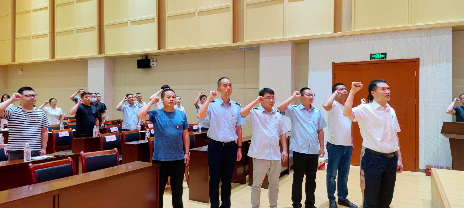 在“七·一”黨員宣誓、“兩優(yōu)一先”表彰大會(huì)環(huán)節(jié)。大會(huì)首先伴隨著雄壯的國(guó)歌聲正式拉開序幕。然后,領(lǐng)誓人公汽一公司書記肖剛與新進(jìn)正式黨員、納新預(yù)備黨員,以及在場(chǎng)老黨員們一起重溫了入黨誓詞。其次,新進(jìn)正式黨員為納新的預(yù)備黨員佩戴了黨徽。